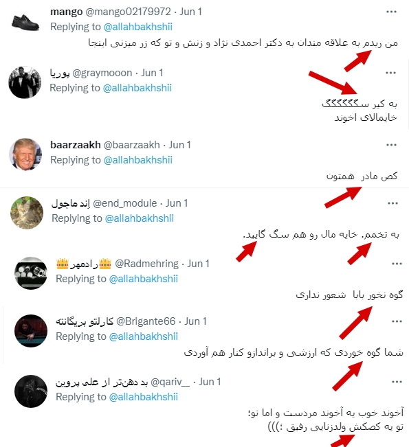 در زیر دو توییت ابراهیم اللهبخشی و مریم جعفری آذرمانی، همسر وحید هِروآبادی، سیل توییتهای سرشار از توهین و ناسزاهای رکیک، سرازیر شد! تنها کار دلیرانه و دلاورانه برخی براندازان داخل و خارج ایران!