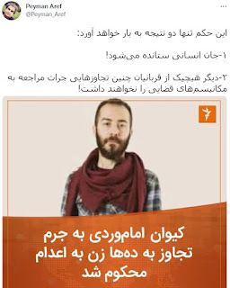 توهینآمیز و بیشرمانه تر اینه که بالای توییت #نه_به_اعدام شاکر بهروزی، زندانی سیاسی کُرد که پس از ابلاغ حکم اعدام به «مکانی نامعلوم» منتقل شده، توییت زدن #نه_به_اعدام کیوان اماموردی!